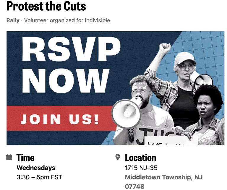 Meet in front of Chris Smith's Middletown office to protest the cuts made to programs that provide vital services for NJ residents.